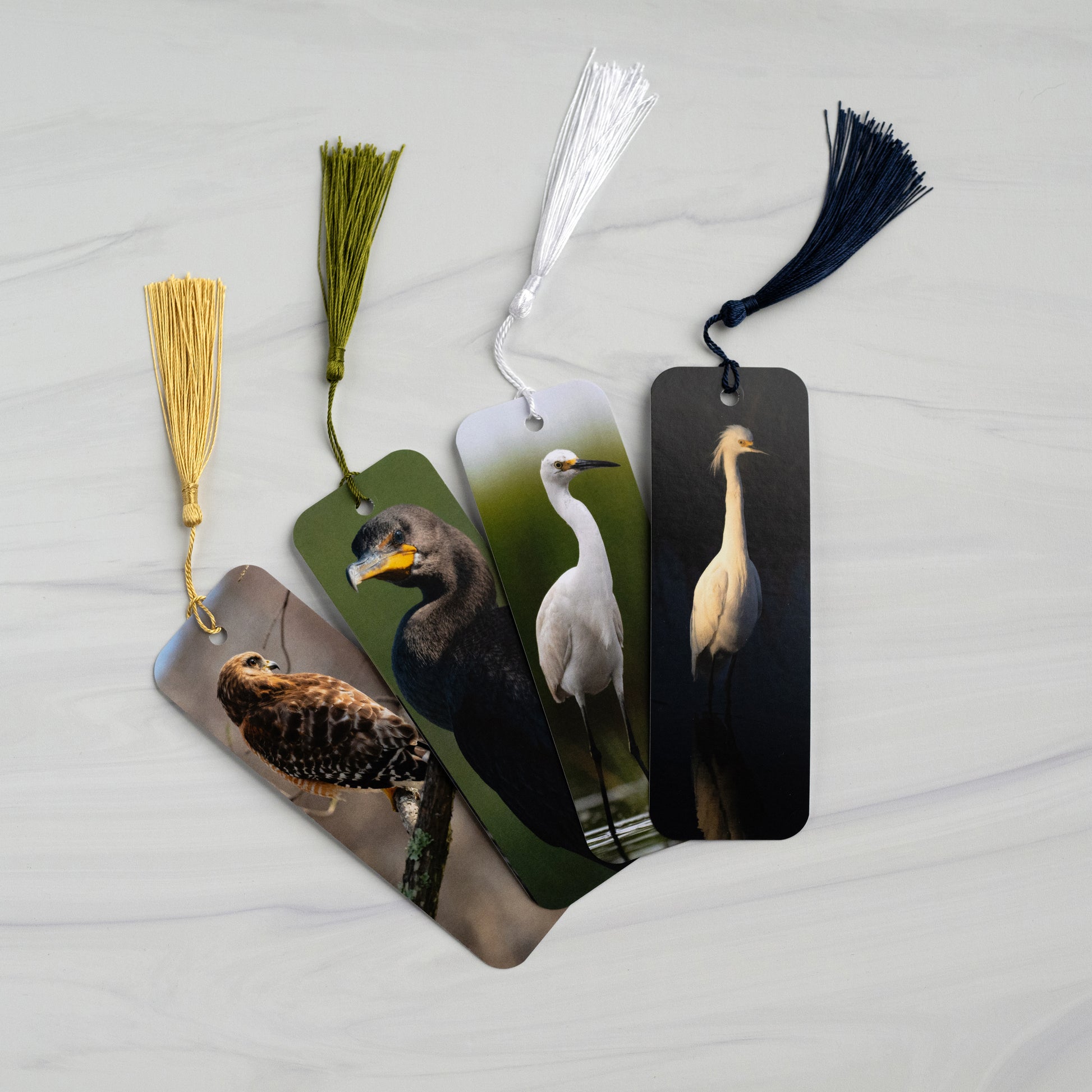 These handcrafted bookmarks feature four emotive moments with birds native to the Lowcountry region. The Great Egret, Snowy Egret, Cormorant, and Red Shouldered Hawk, were photographed in their natural environments by local photographer, Josh Walker. He makes each set of four with care and attention to detail, so that these bookmarks can become a delightful and practical keepsake for nature lovers and book enthusiasts.